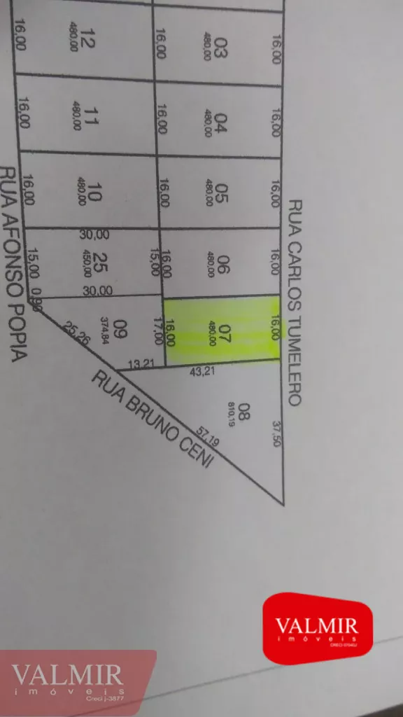 VALMIR IMÓVEIS VENDE TERRENO NO PARQUE DO SOM, localizado próximo a Associação Vila Militar.