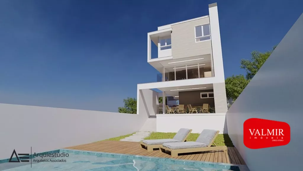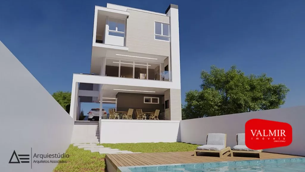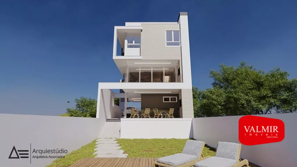 Sobrado de alto padrão com 191m² divididos em 3 andares, o pavimento inferior conta com área de serviço, 02 vagas de garagem individuais, espaço gourmet com churrasqueira e acesso aos fundos do terreno.