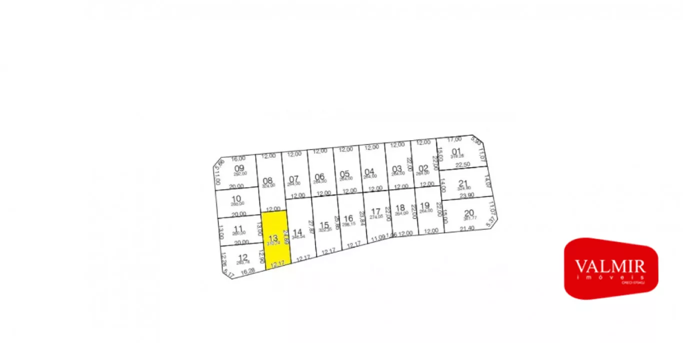 Terreno de 310,74m², murado nas laterais e nos fundos.