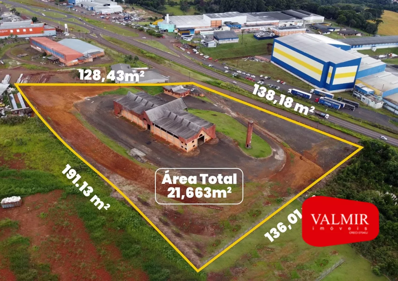 Terreno amplo de 21.663m², terreno plano, com 138 m² de frente para BR.