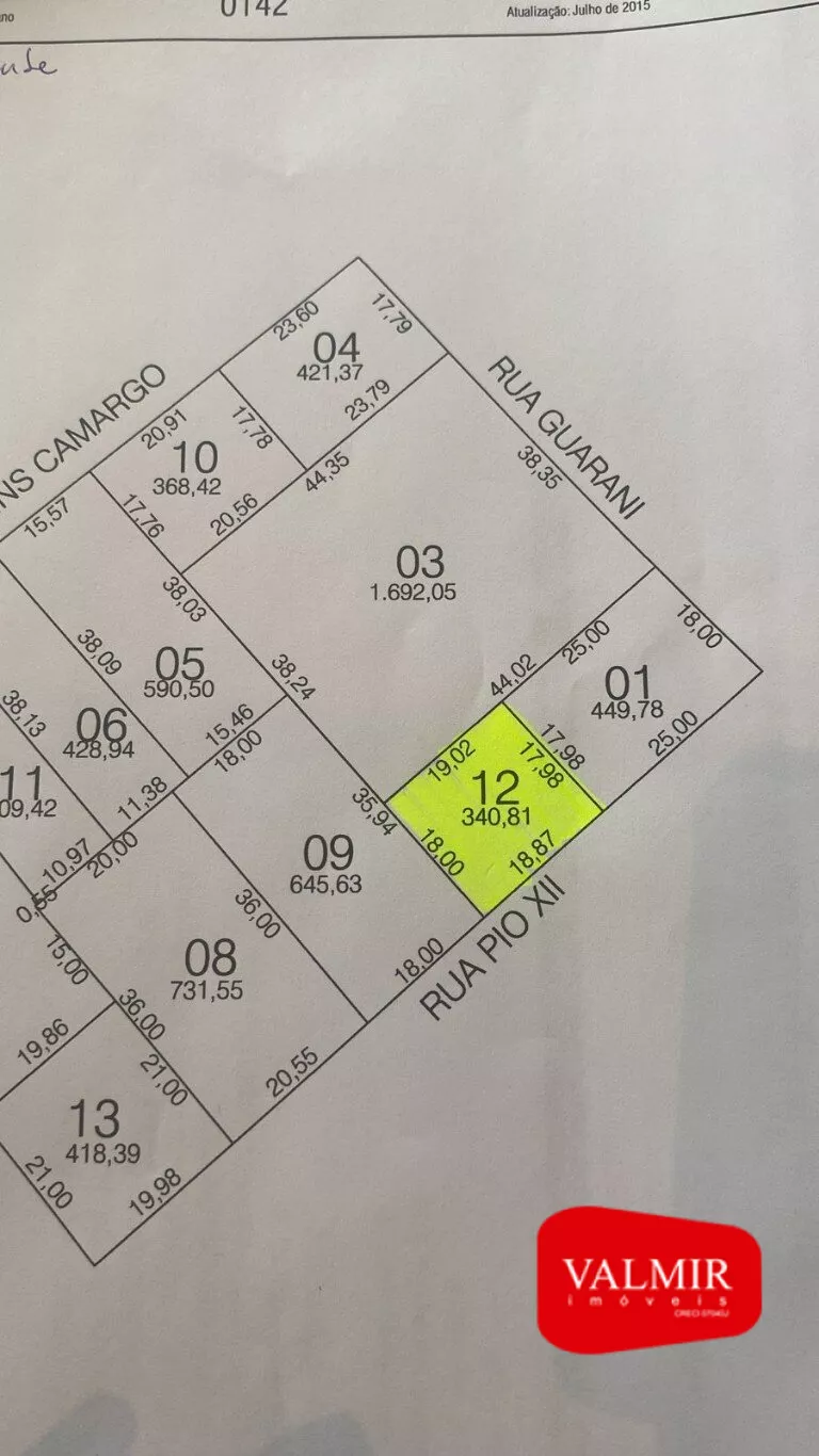 Terreno com 340m² de área total e uma frente ampla com 19m². Terreno ideal para construção comercial ou residencial.