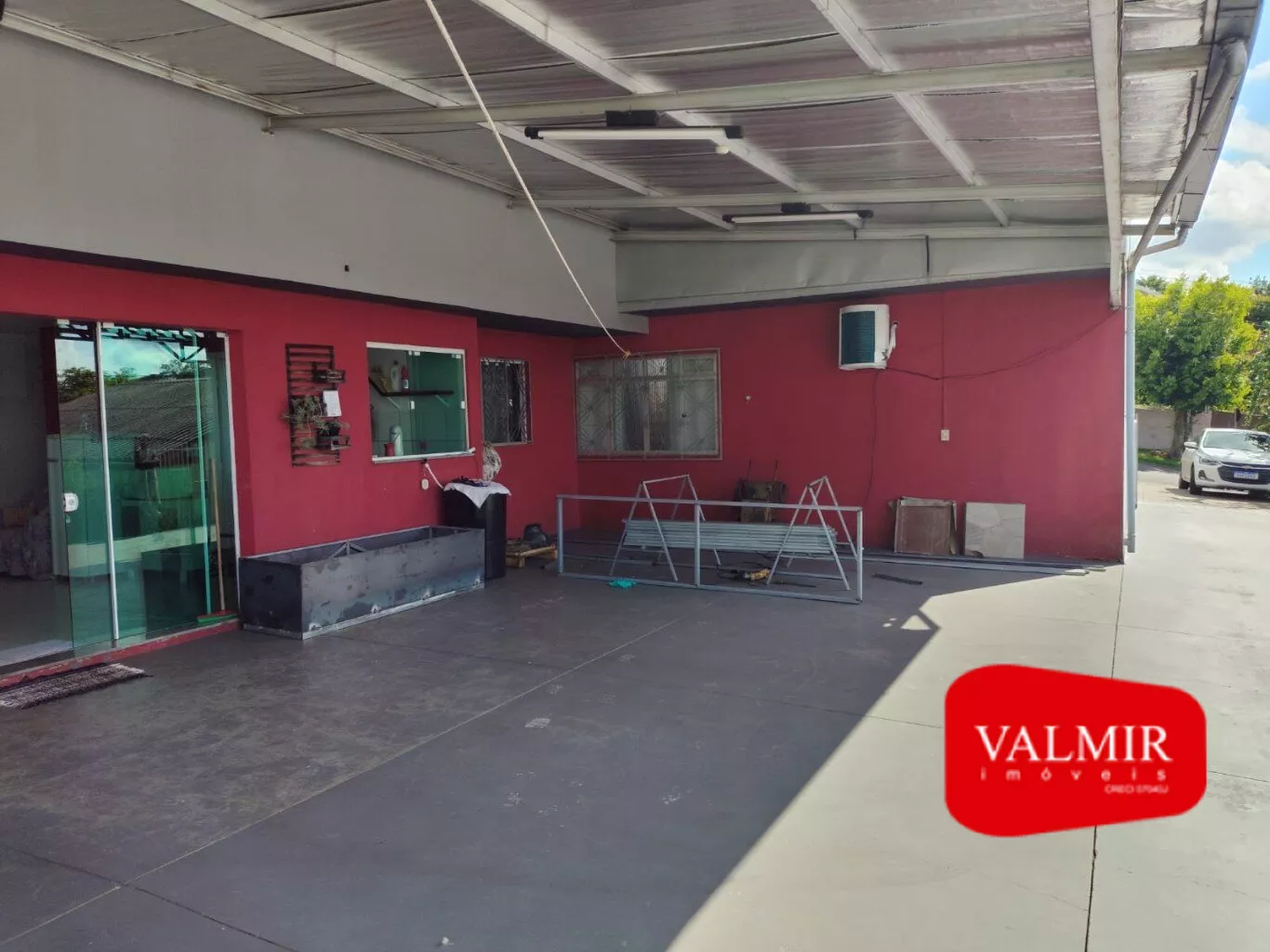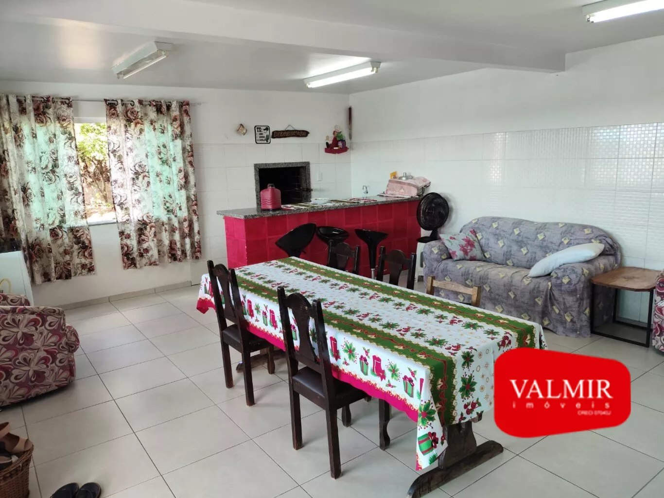 Na área externa, o imóvel possui garagem coberta para um carro e vagas externas para até quatro veículos. Além disso, conta com um diferencial especial: um pomar e uma horta que completam o espaço de lazer e convivência.