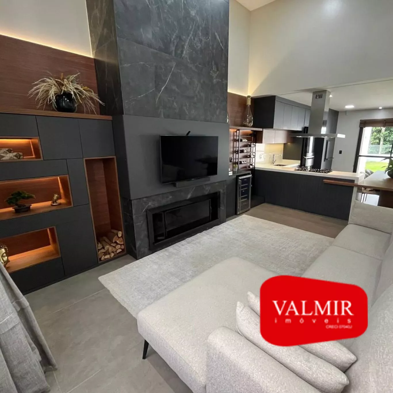 São 155m² de área construída, muito bem distribuídos em 03 dormitórios sendo 01 suíte master com closet e 01 suíte ,sala de estar aconchegante com lareira, integrada à cozinha, área de serviço, lavabo e 02 vagas de garagem coberta.
