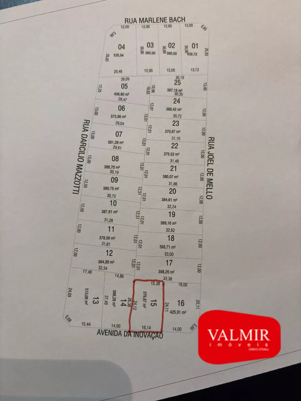 Terreno amplo com 379,87m², totalmente plano, acima do nível da rua.