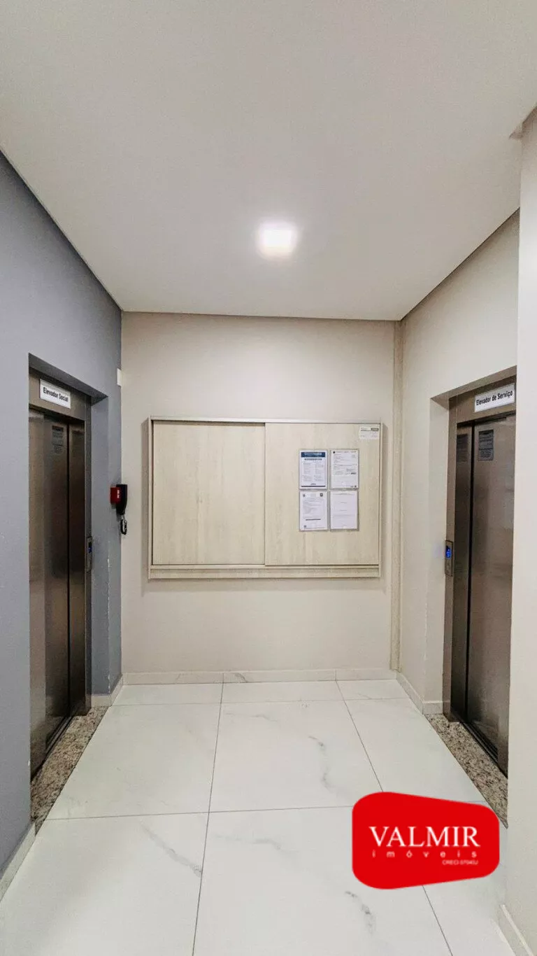 Hall de entrada com mini mercado, 02 elevadores, salão de festas, academia, quadra de sintético, playground.