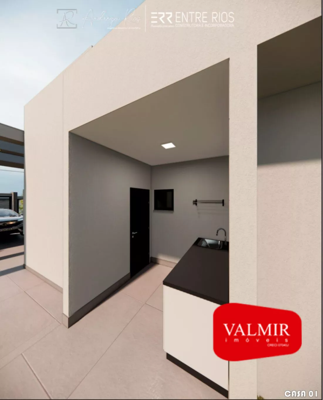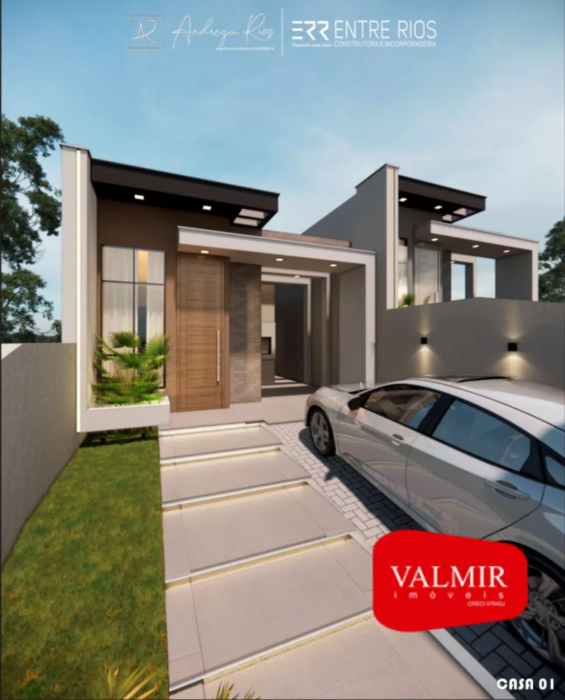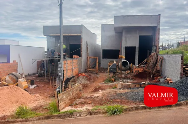 Casa em construção, em alvenaria, com laje, sendo 66,74m² de área útil, sua planta conta com 02 dormitórios , cozinha integrada com a sala, banheiro social, churrasqueira área de serviço, e vaga de garagem descoberta, com sobra de terreno aos fundos.