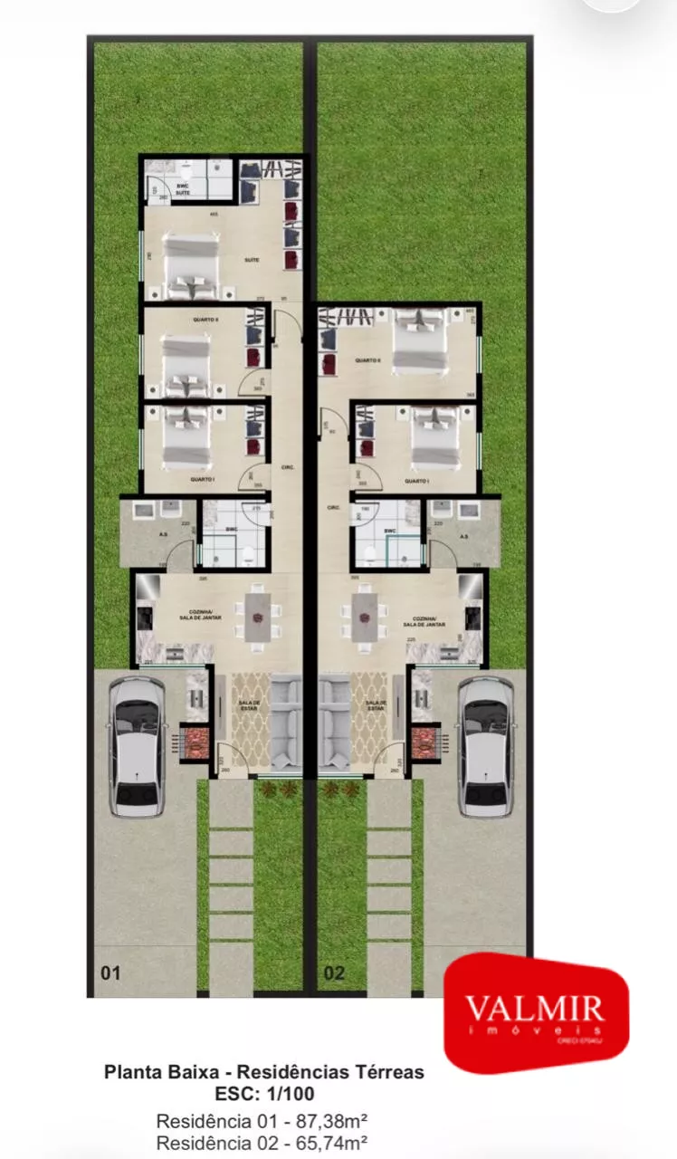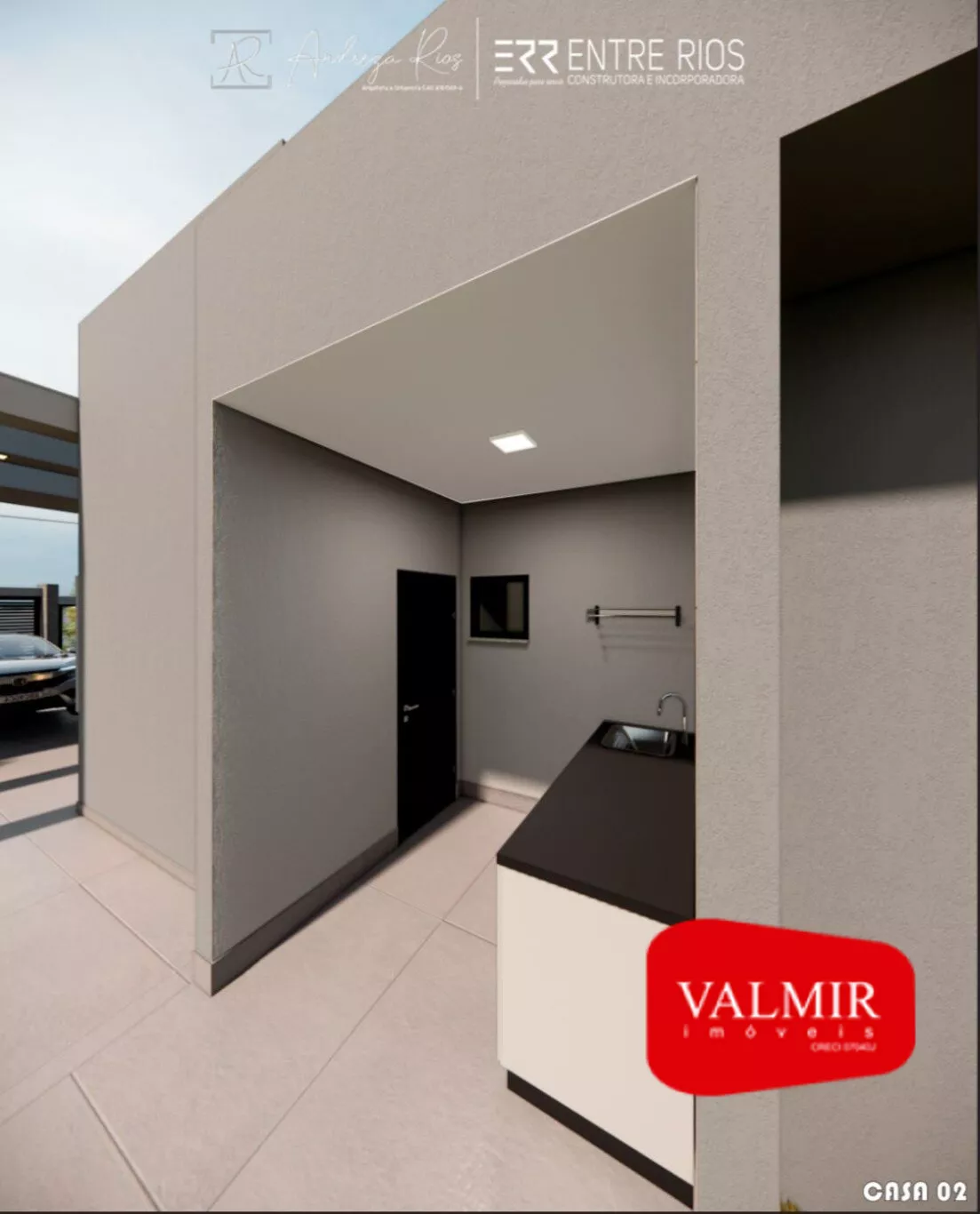 Casa em construção, em alvenaria e com laje, sendo 87,38m² de área útil, composta por 01 suíte + 02 dormitórios, sala, cozinha, banheiro social, área de serviço, churrasqueira, 01 vaga de garagem.